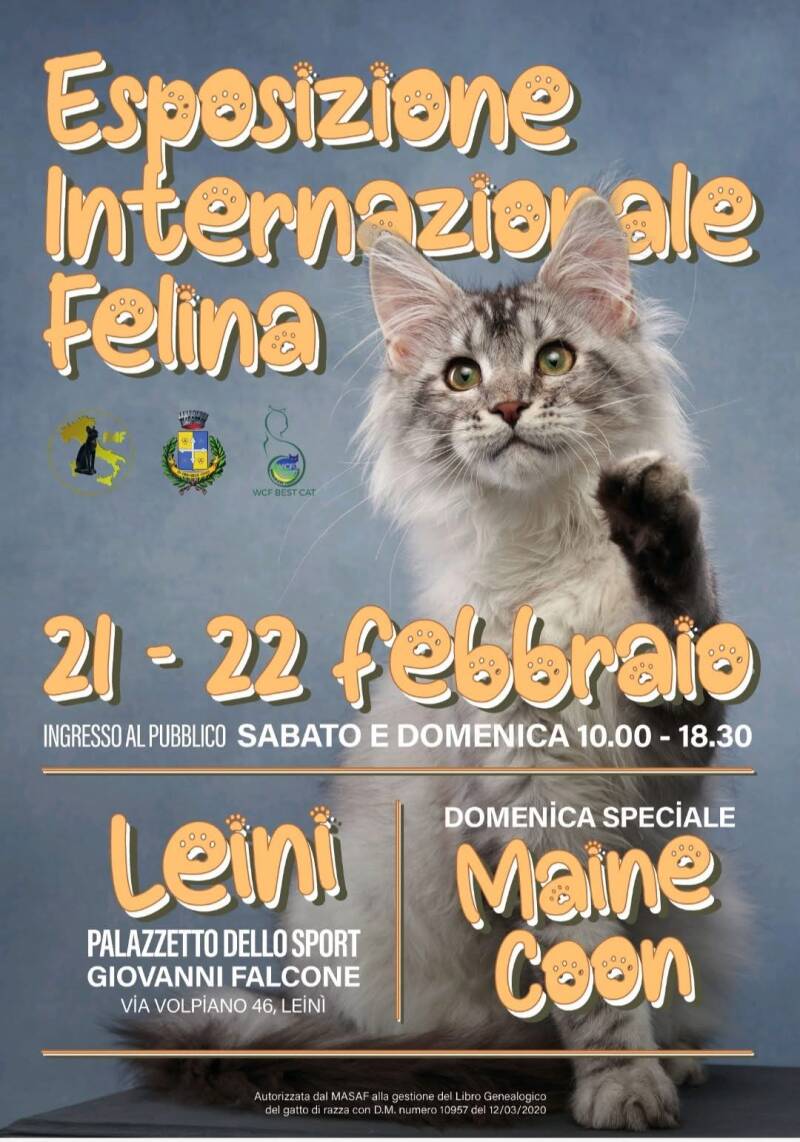 -Dal 15702/2025 al 16/02/2025 dalle ore 10:30 alle 18:30 si terrà al Centro Pavesi a Milano l' Esposizione internazionale felina. Si foto veda locandina